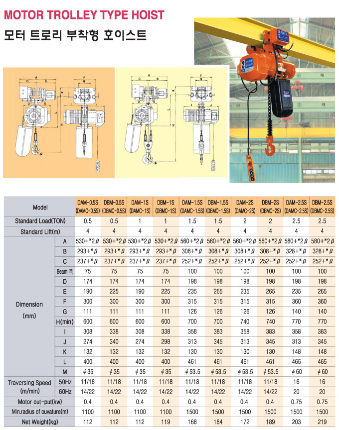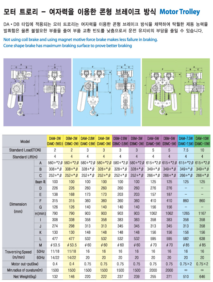 > 호이스트 >[DA · DB Series] 모노레일식 수동 호이스트